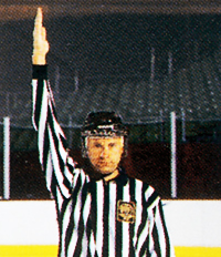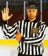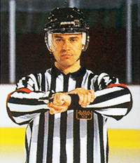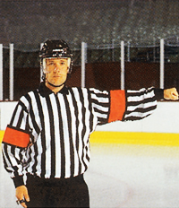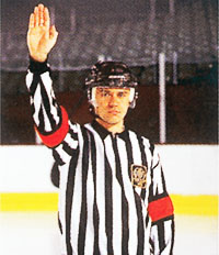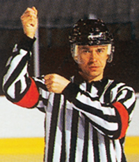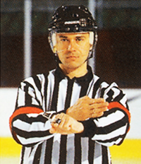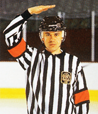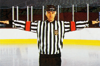 Обе руки на талии. Этот же знак показывает неспортивное поведение, удаление на десять минут, удаление до конца игры.