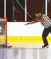 Однократное указание в направление ворот, в которые по правилам заброшена шайба.