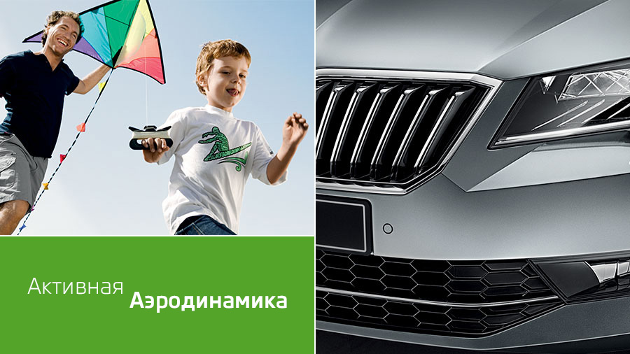 Активные заглушки воздухозаборников уменьшают аэродинамическое сопротивление и тем самым снижают расход топлива и объем выбросов нового Superb Combi. Если двигатель или система кондиционирования воздуха работают не на полную мощность, вентиляционные отверстия закрываются и потоки воздуха огибают контуры автомобиля, что ведет к снижению потерь. Активные заглушки также позволяют быстрее нагреть двигатель при холодном запуске.