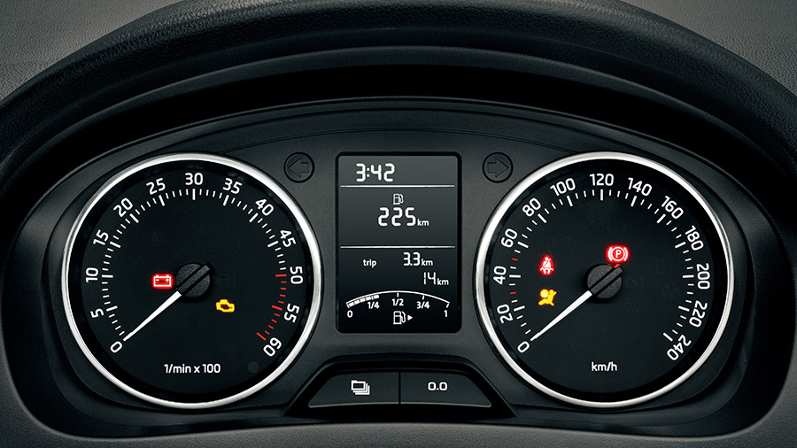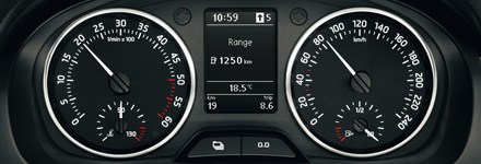 Дисплей Maxi DOTЦентральный дисплей Maxi DOT отображает различные данные бортового компьютера, температуру наружного воздуха, текущее время и пробег (суточный и общий). С его помощью можно также настроить параметры электронных систем автомобиля, а также контролировать температуру охлаждающей жидкости и уровень топлива с помощью аналоговых индикаторов.