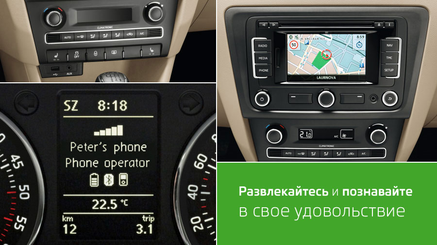 Изобилие развлечений и информацииГлавная цель ŠKODA — сделать вождение автомобиля как можно более приятным и комфортным. Помимо отлично зарекомендовавших себя систем, обеспечивающих дополнительную безопасность, ŠKODA Rapid также предлагает ряд современных мультимедийных систем.